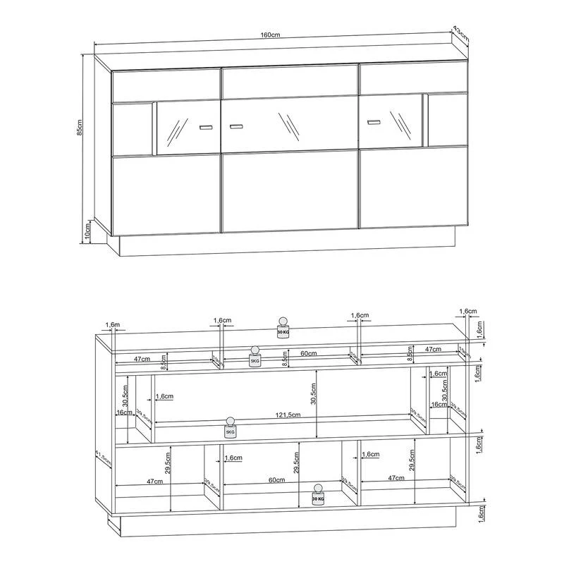 - Charge maximale des étagères : 5 kg
