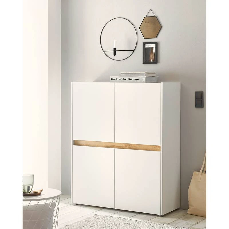 - Plateau supérieur et élément décoratif : imitation chêne de Wotan