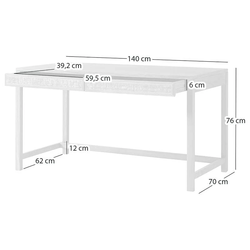 - Hauteur du bord inférieur du cadre de table : 65 cm