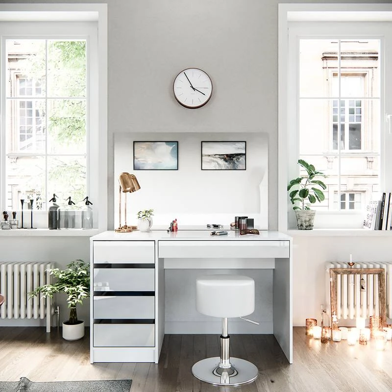 - Contenu de la livraison : • 1x coiffeuse• 1x miroir• 1x tabouret designDécoration non incluse