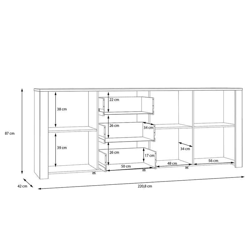 - Dimensions intérieures du tiroir : 50 x 16 x 34 cm (L x H x P)