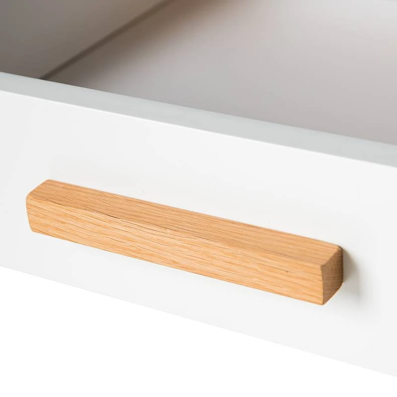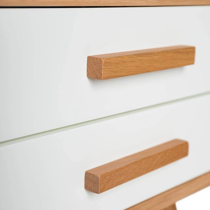 - Pieds et poignée : chêne massif