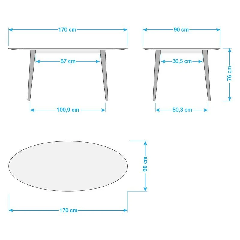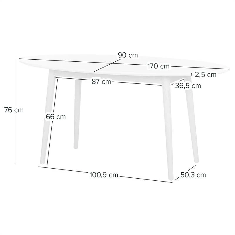 - Distance entre les pieds sur la largeur (sous la table/sur le sol) : 87/100,9 cm