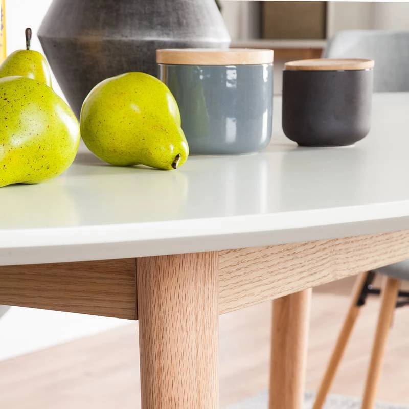 - Pieds de table : chĂŞne massif verni