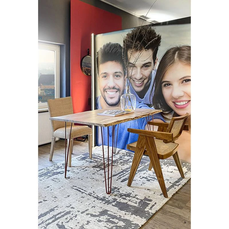 - Plateau de table : acacia massif teinté et verni